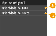 Pode selecionar o tipo de original consoante a imagem que pretende imprimir. Selecionar <Prioridade de Foto> ou <Prioridade de Texto>.