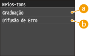Pode selecionar o método de impressão para reproduzir meios-tons (o intervalo intermédio entre as áreas mais claras e mais escuras de uma imagem) para obter uma qualidade de imagem ideal. Toque em <Graduação> ou <Difusão de Erro>.