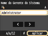Introduza até 32 carateres para o nome do administrador de sistema e toque em <Aplicar>. Introduzir texto