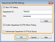 Selecione a caixa de verificação para ver o ecrã pop-up [Confirm Department ID/PIN] (Confirmar ID de Departamento/PIN) sempre que imprimir a partir de um computador.