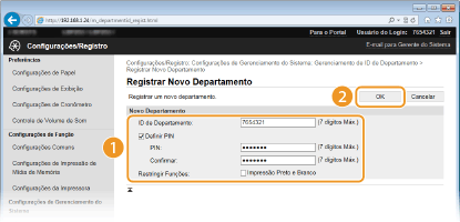 Introduza um número que tenha até sete dígitos para o PIN se estiver definido para a ID de departamento.