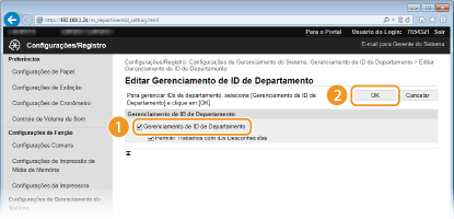 Selecione a caixa de verificação [Use Department ID Management] (Utilizar Gestão de ID de Departamento) e clique em [Settings] (Definições) à direita.