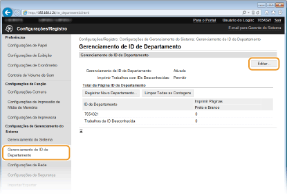[Total da Página ID de Departamento]Pode verificar o número total de páginas impressas para cada ID de departamento.