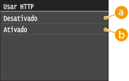 O protocolo HTTP é utilizado para comunicações através da rede, como, por exemplo, quando acede à máquina através da UI Remota. Se utilizar uma ligação USB ou se não pretender utilizar o protocolo HTTP, pode desativar o HTTP para bloquear intrusões maliciosas de terceiros através da porta HTTP não utilizada.