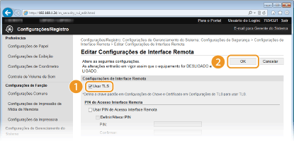 Clique em [Configurações de Segurança]  [Configurações de Interface Remota].