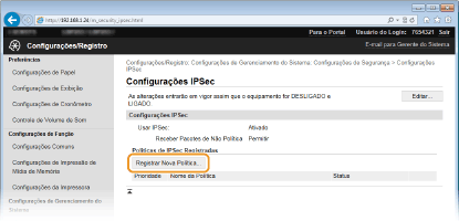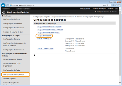 Utilizar o painel de controloTambém pode ativar ou desativar a comunicação IPSec a partir de <Menu> no ecrã Início. Usar IPSec