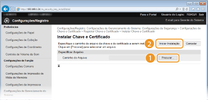 Clique em [Configurações de Chave e Certificado] para instalar um par de chaves ou [Configurações de Certificado CA] para instalar um certificado AC.