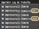 Se a impressão não for bem sucedida devido a um erro, o ecrã de registo de impressão apresenta um código de erro composto por três dígitos. Verifique a secção que se segue para ver causas e soluções relativas a cada código de erro.