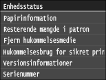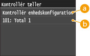 ), vises skærmen <Kontrollér tæller>. På denne skærm kan du se tællerværdier for udskrifter samt maskinens serienummer og maskinkonfigurationen.
