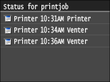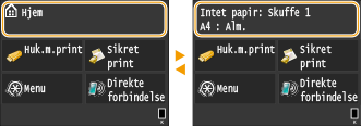 , vises en skærm, der giver dig mulighed for at kontrollere statussen for det dokument, der udskrives, samt statussen for maskinen (resterende mængde i tonerpatronen, etc.) eller oplysninger om netværksindstillinger som f.eks. maskinens IP-adresse.