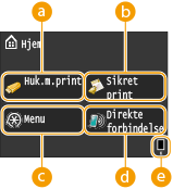 på kontrolpanelet. Brug denne skærm til at angive indstillinger for og registrere funktioner.