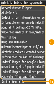 <Menu> <Netværksindstillinger> <Initialiser netværksindstillinger> <Ja> Genstart maskinen |