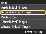 Alle indstillinger om netværket vises med korte beskrivelser. Standardindstillingerne er angivet med en daggert (