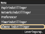 Indstillinger, der er markeret med en asterisk (*) er kun tilgængelige, når den valgfri papirfremfører (skuffe 2) er tilsluttet.