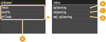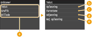 Indstillingerne, der er angivet for <Tæthed>, deaktiveres, når <Tonerbesparelse> aktiveres.