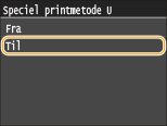 Hvis du indstiller dette punkt til <Til>, kan udskriftskvaliteten blive lavere afhængigt af papirtype eller driftsmiljø (mere specifikt, hvis du udskriver på tyndt papir eller bruger maskinen i et miljø med høj fugtighed).