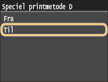 Hvis problemet ikke kan løses ved at indstille dette punkt, skal du indstille <Speciel printmetode D> til <Til>. Speciel printmetode D