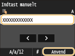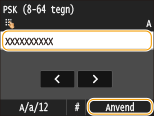 Indtast netværksnøglen ved hjælp af taltasterne, og tryk på <Anvend>. Indtastning af tekst