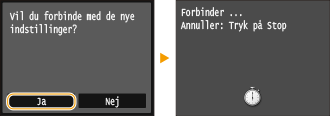 Når du opretter forbindelse til et trådløst LAN, opstår der en godkendelsesfejl i maskinen, hvis godkendelsen af den delte nøgle er angivet på den trådløse router. Hvis dette sker, ændrer maskinen automatisk indstillingen til <Delt nøgle> og forsøger at oprette forbindelse igen.