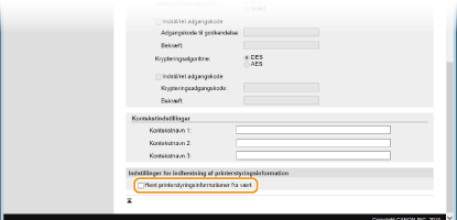 Angiv indstillinger for hentning af printeradministrationsoplysninger.