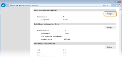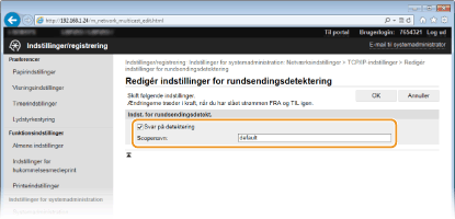 Marker afkrydsningsfeltet for at indstille maskinen til at reagere på pakker til registrering af software-multicasts til styring af enheder og aktivere overvågning ved hjælp af software til styring af enheder. [Scopenavn]
