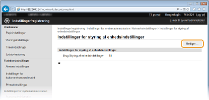 Brug af kontrolpaneletDu kan også konfigurere indstillingerne for administration af enhedsindstillinger fra <Menu> på Hjem-skærmen. Styring af enhedsindstillinger Til/Fra