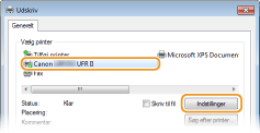 Vælg din printer, og klik på [Preferences] (Indstillinger) (eller [Properties] (Egenskaber)).