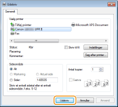 Hvordan dialogboksen for udskrivning vises, er forskelligt fra program til program. Du kan få flere oplysninger i betjeningsvejledningen for det program, du bruger.