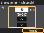 Det sikrede dokument slettes fra maskinens hukommelse, når den tid, der er angivet her, udløber.
