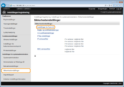 Start Brugerinterface til fjernbetjening, og log på i systemadministratortilstand.