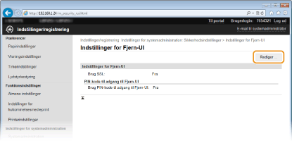 Marker afkrydsningsfeltet [Brug PIN-kode til adgang til Fjern-UI], og angiv pinkoden.