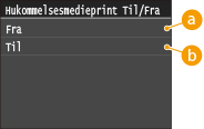 Tryk på <Hukommelsesmedieprint Til/Fra>.