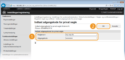 Angiv navnet på nøgleparret og adgangskoden, og klik derefter på [OK].