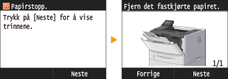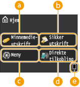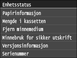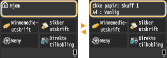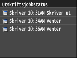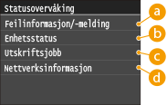 , vises et skjermbilde som lar deg sjekke statusen på dokumentet som skrives ut, samt statusen til maskinen (hvor mye toner som er igjen i tonerkassetten osv.) eller informasjon om nettverksinnstillingene, for eksempel maskinens IP-adresse.