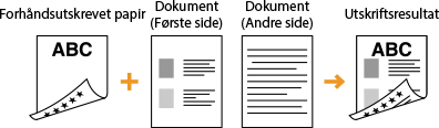 Når du skriver ut på ferdigtrykt papir, må du endre hvilken side av papiret som vender opp, hver gang du skifter mellom enkeltsidig og dobbeltsidig utskrift. Hvis imidlertid <Valg papirmatingsmetode> er angitt til <Utskriftssideprioritet>, kan siden som er vendt opp når du legger inn forhåndstrykt papir for dobbeltsidig utskrift (logosiden vendt opp for papirskuffen eller ned for flerfunksjonsskuffen), også brukes for enkeltsidig utskrift. Denne innstillingen er spesielt nyttig hvis du ofte utfører både enkeltsidig og dobbeltsidig utskrift. Valg papirmatingsmetode