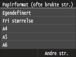 Når et egendefinert papirformat legges i