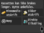 Angi når denne meldingen visesDu kan angi enhver verdi som prosenten gjenværende toner som aktiverer denne meldingen. Vis tidspunkt for visning av varsel om kassettforberedelse