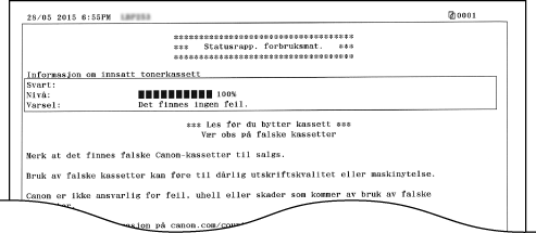 <Statusrapport forbruksmateriell>
