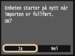 Importen starter. Maskinen starter på nytt automatisk etter at importen er fullført.