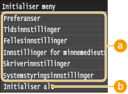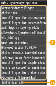 <Meny> <Nettverksinnstillinger> <Initialiser nettverksinnstillinger> <Ja> Start maskinen på nytt |