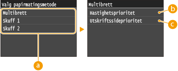 Papir), brukes <Hastighetsprioritet> for papirkilden i stedet. I slike tilfeller må du legge inn papiret på samme måte som når <Hastighetsprioritet> er valgt (