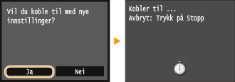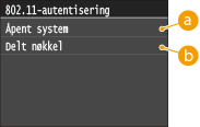 Når du kobler til et trådløst LAN, oppstår det en godkjenningsfeil på maskinen hvis godkjenningen av den delte nøkkelen er angitt på den trådløse ruteren. Hvis dette skjer, endrer maskinen automatisk innstillingen til <Delt nøkkel> og prøver tilkoblingen på nytt.
