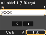 Tast inn nettverksnøkkelen med talltastene, og trykk på <Bruk>. Skrive inn tekst