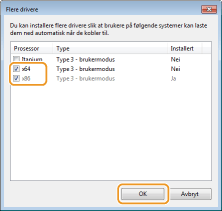 Merk av i boksen for bitarkitekturen som andre datamaskiner kjører, og klikk på [OK] (OK).