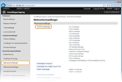 mDNS (multikast-DNS) brukes av Bonjour og er en protokoll for å knytte et vertsnavn til en IP-adresse uten bruk av DNS. Merk av i boksen hvis du vil aktivere mDNS, og angi mDNS-navnet i tekstboksen [mDNS-navn]. [DHCP-tilleggsinnstillinger][Hent vertsnavn]