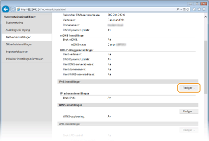 Klikk på [Rediger] i [IPv6-innstillinger].