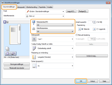 Velg dokumentformatet i [Sidestørrelse]