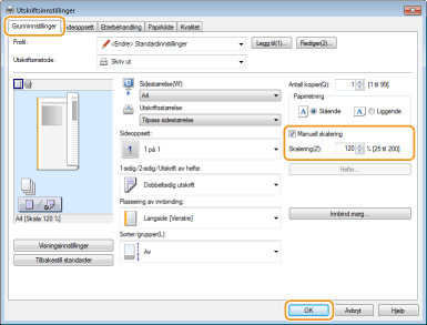 Skriv inn utskrifts forholdet i [Skalering]
