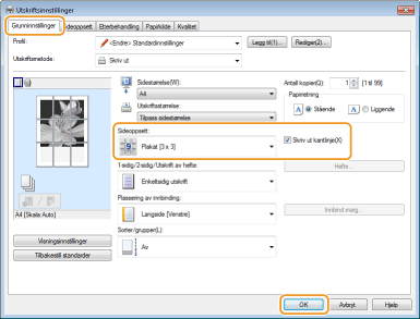 Merk av for [Skriv ut kantlinje] for å legge til kantlinjer på utskriftene. Kantlinjer er nyttige hvis du vil lime inn utskriftene samlet eller redusere margene.
