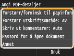 Du kan endre utskriftsinnstillingene for PDF-filer.